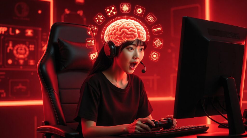 Otak kita punya jalur reward mesolimbic pathway: Ventral tegmental area (VTA) lepaskan dopamin ke nucleus accumbens saat achievement in-game. Lonjakan dopamin 2x lipat saat kill streak atau gacha SSR, mirip heroin tapi lebih ringan (10x untuk narkoba).